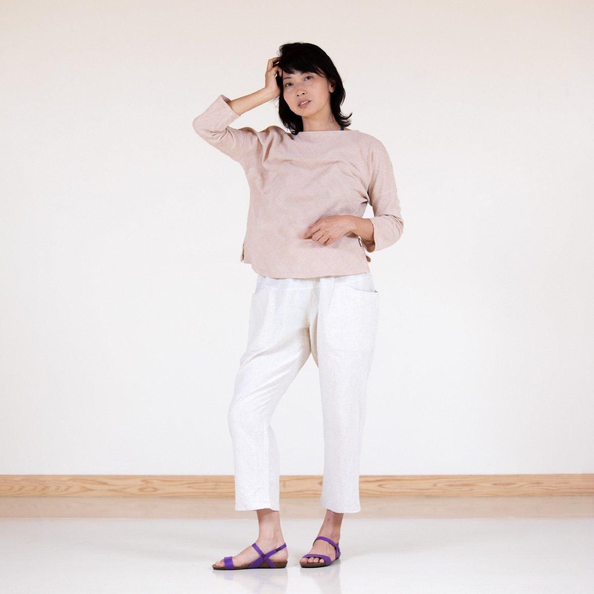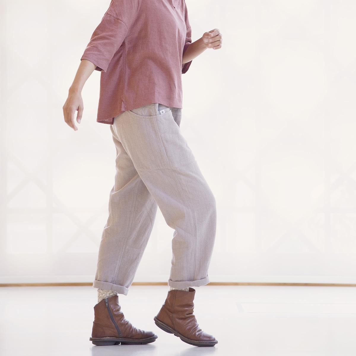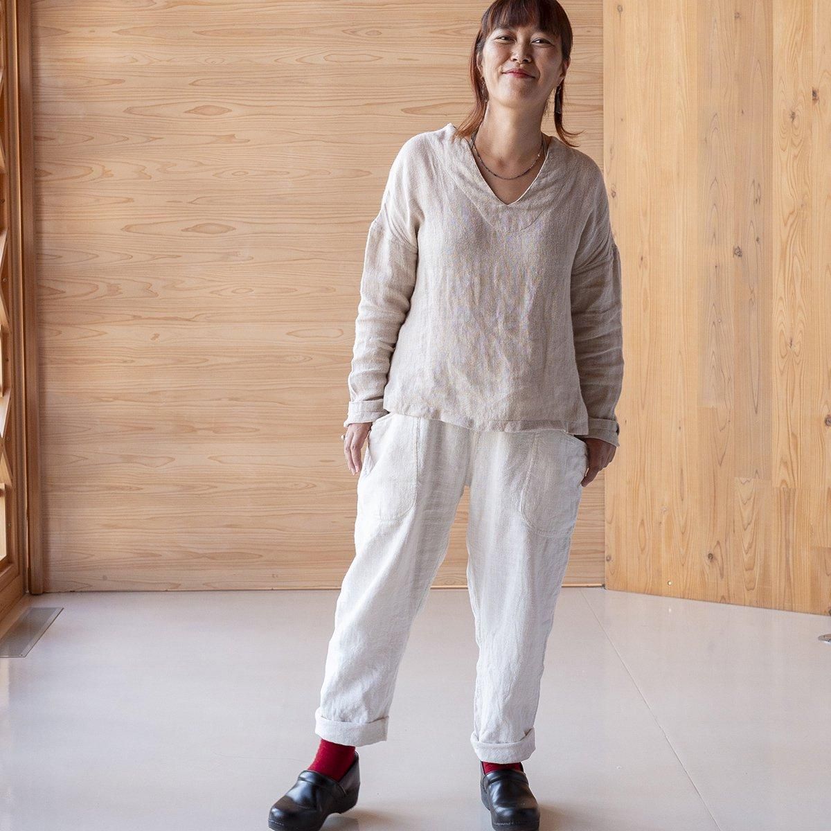 素材は厚手のヘンプ100%を使用し、透け感の心配がないため一年中活躍します。リラックスタイムからアクティブなアウトドアまで、幅広いシーンで活用できる定番アイテムです。ラフなスタイルからキレイめまで、様々なコーディネートにマッチします。