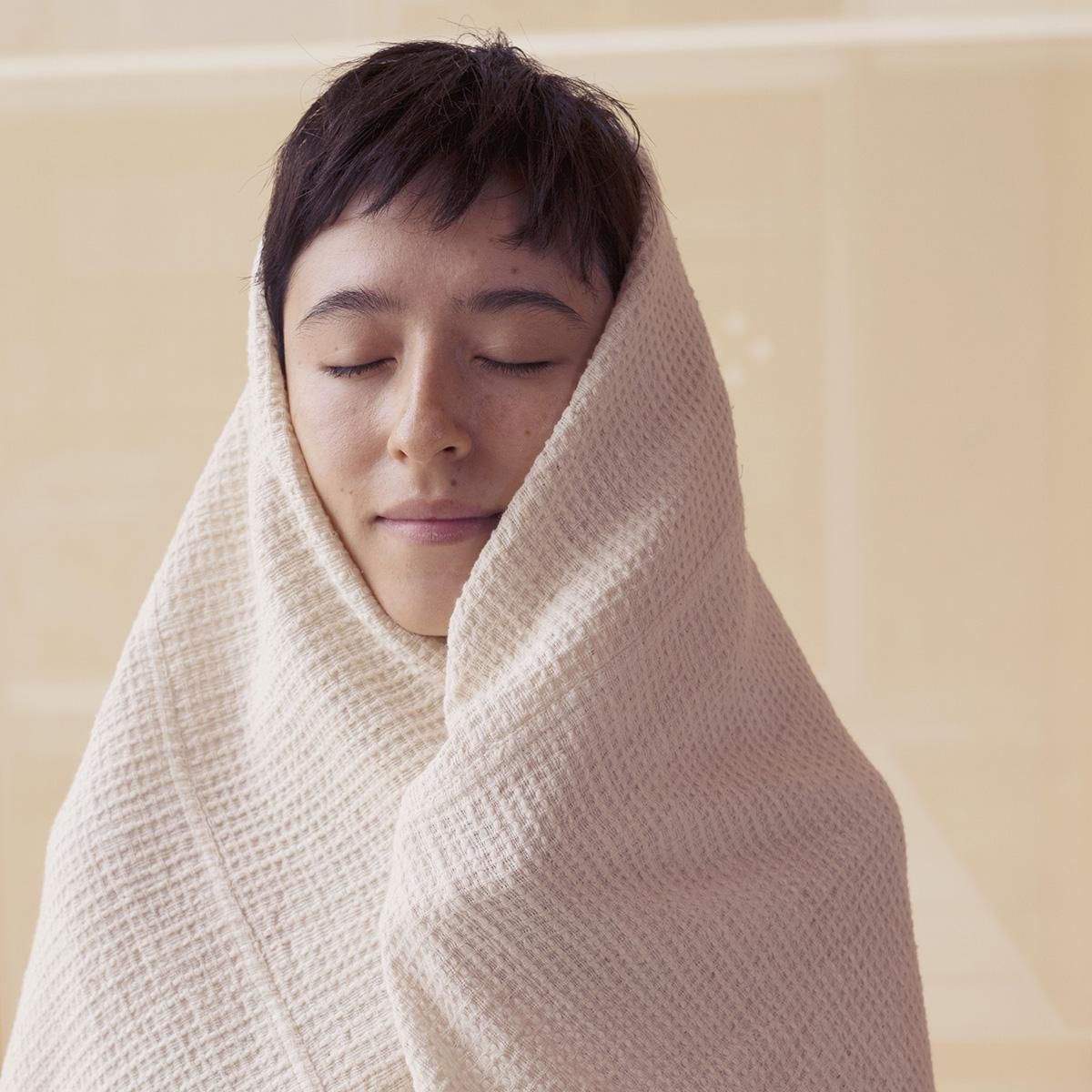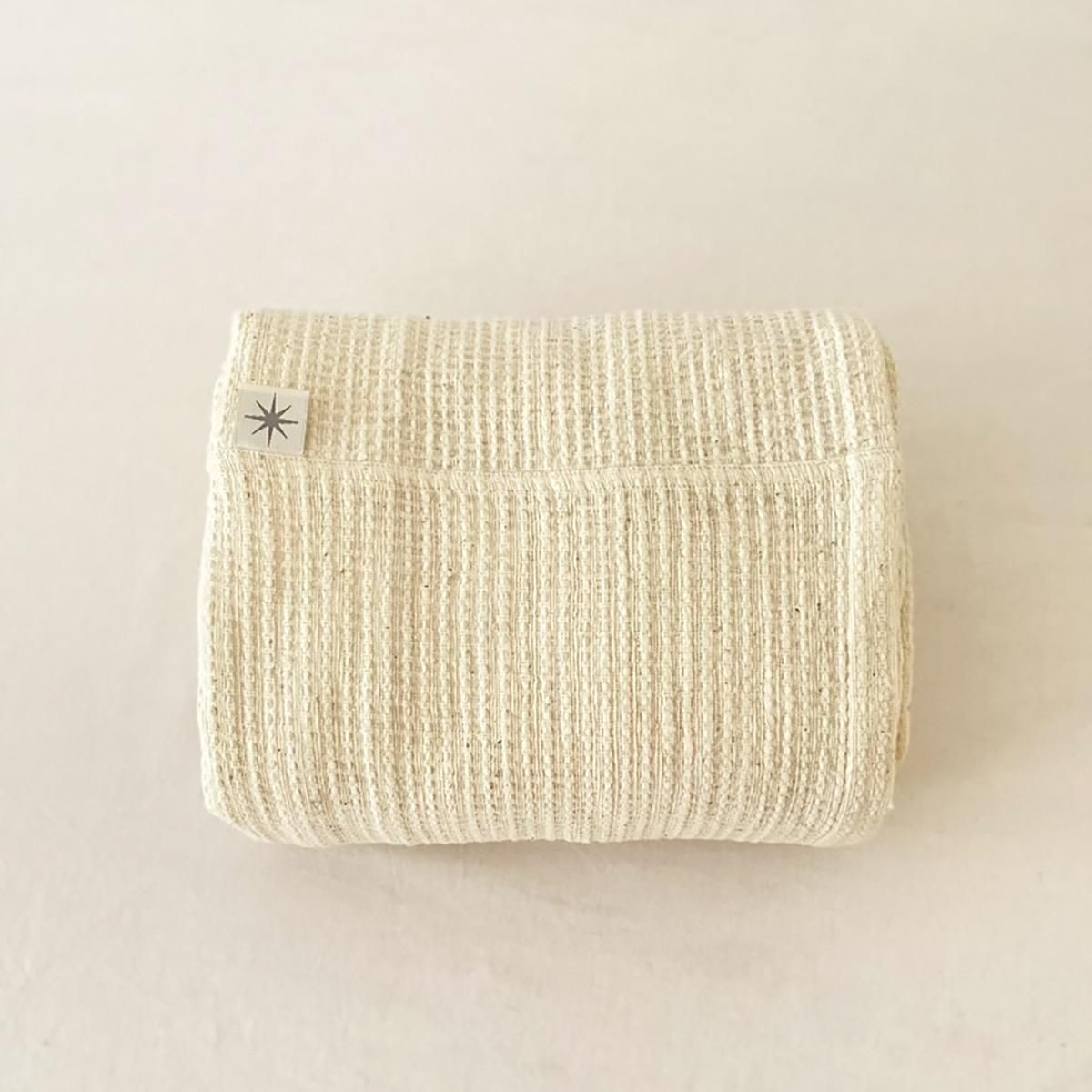 手仕事による美しい手織りの肌掛け、「FINA ナチュラル」をご紹介します。この商品は、上質な手紡ぎコットンを使用しており、熟練の職人が一枚一枚丁寧に手織りしています。そのため、独特の風合いと柔らかさが特徴です。