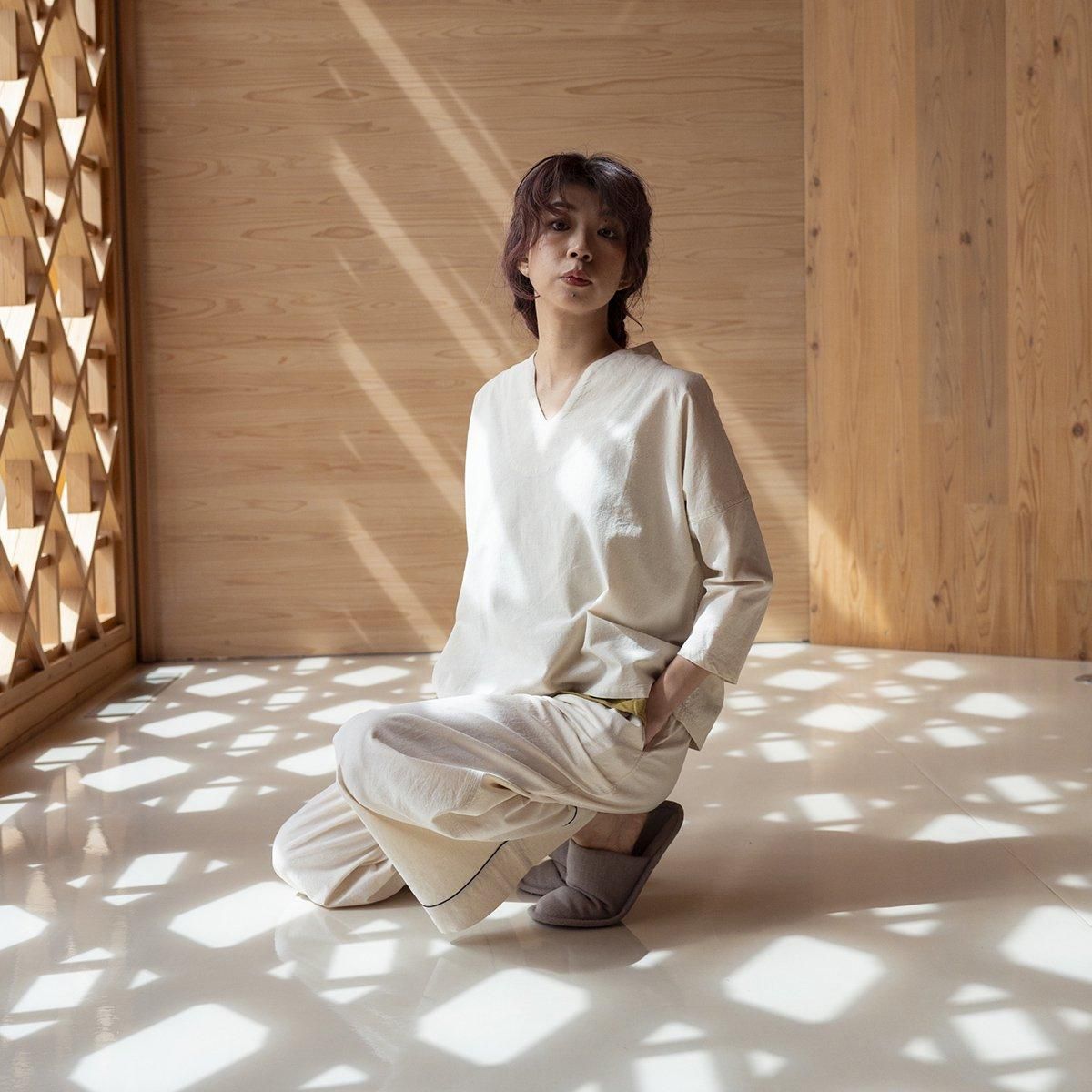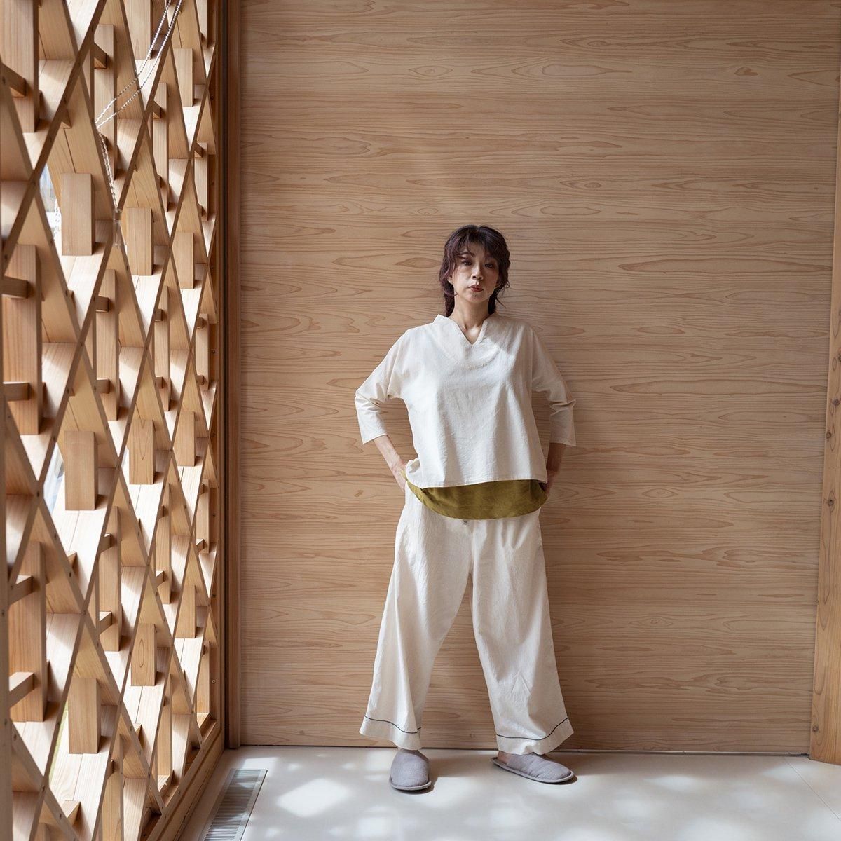 *タンクトップブラとの重ね着。フィレアードパンツやパジャマボトムスなどとのコーディネートもしやすいアイテムです。