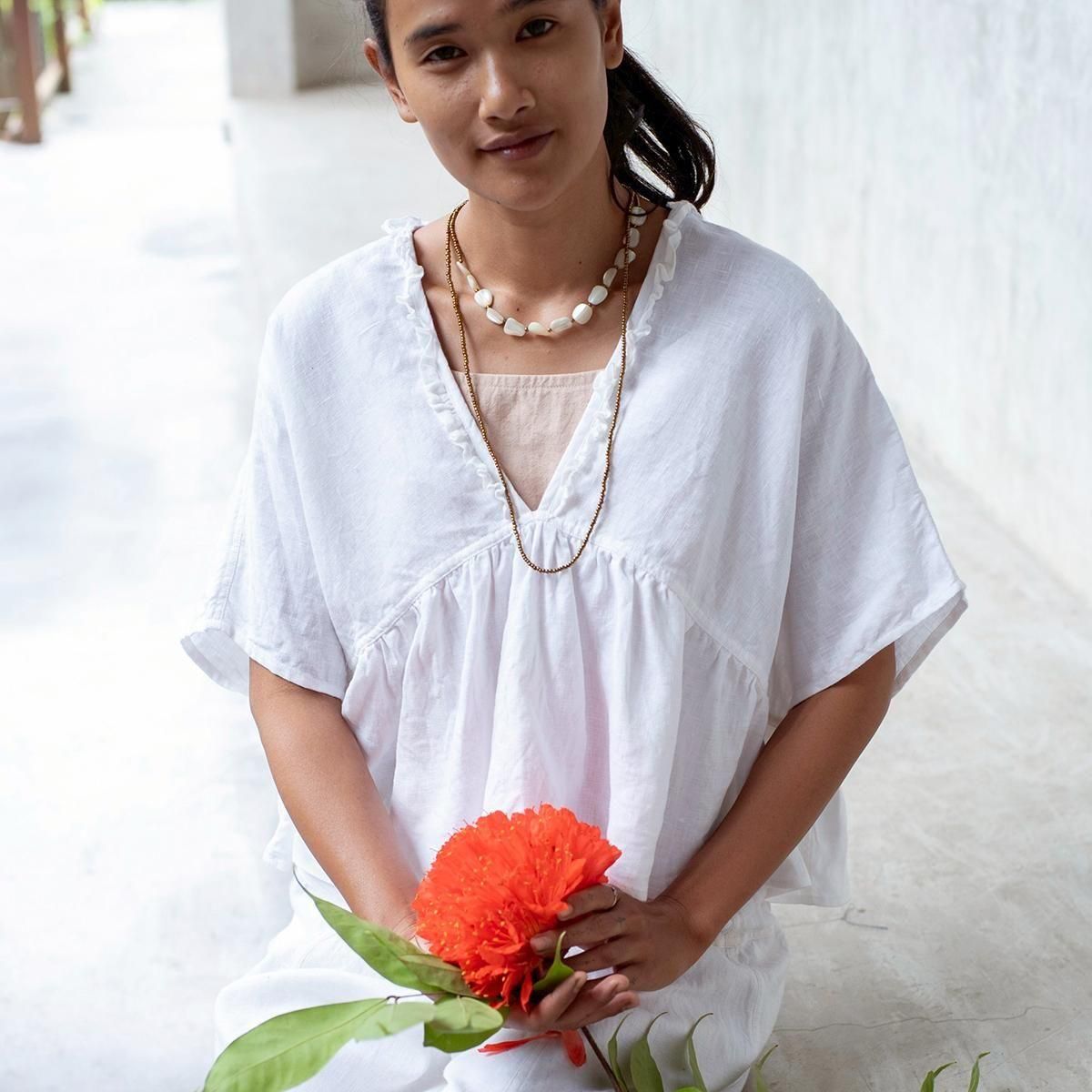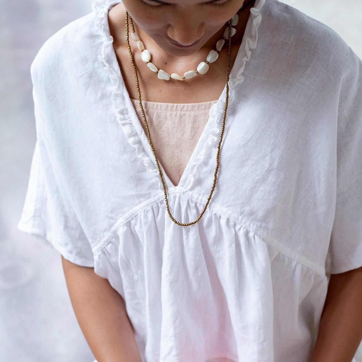 夏はタンクトップブラやキャミソールブラショートリボンと合わせで、秋冬はインナーを長袖に変えていただくと、一年通して活躍します。