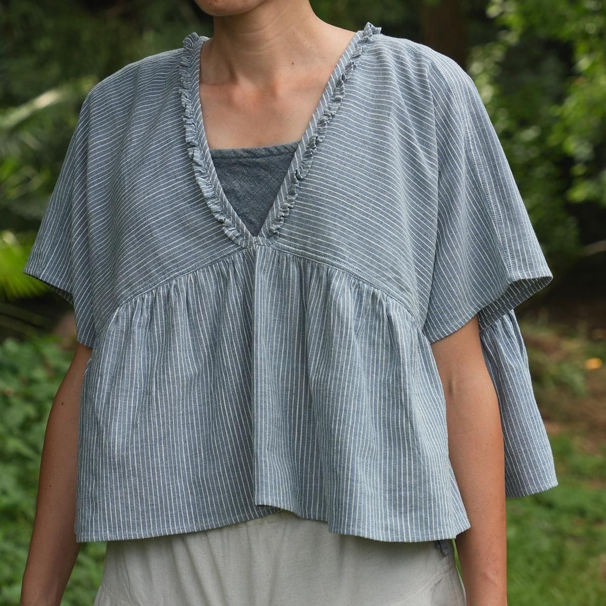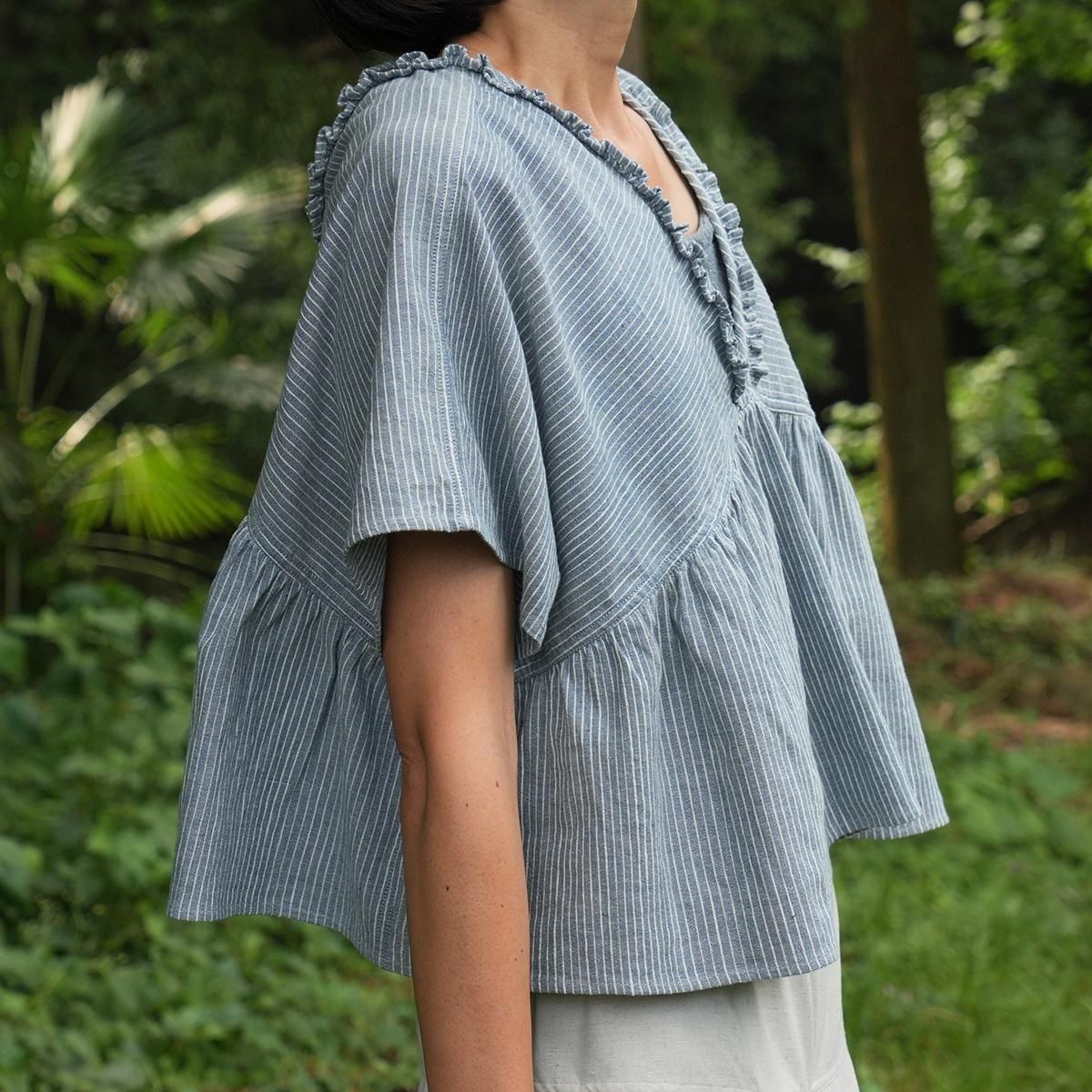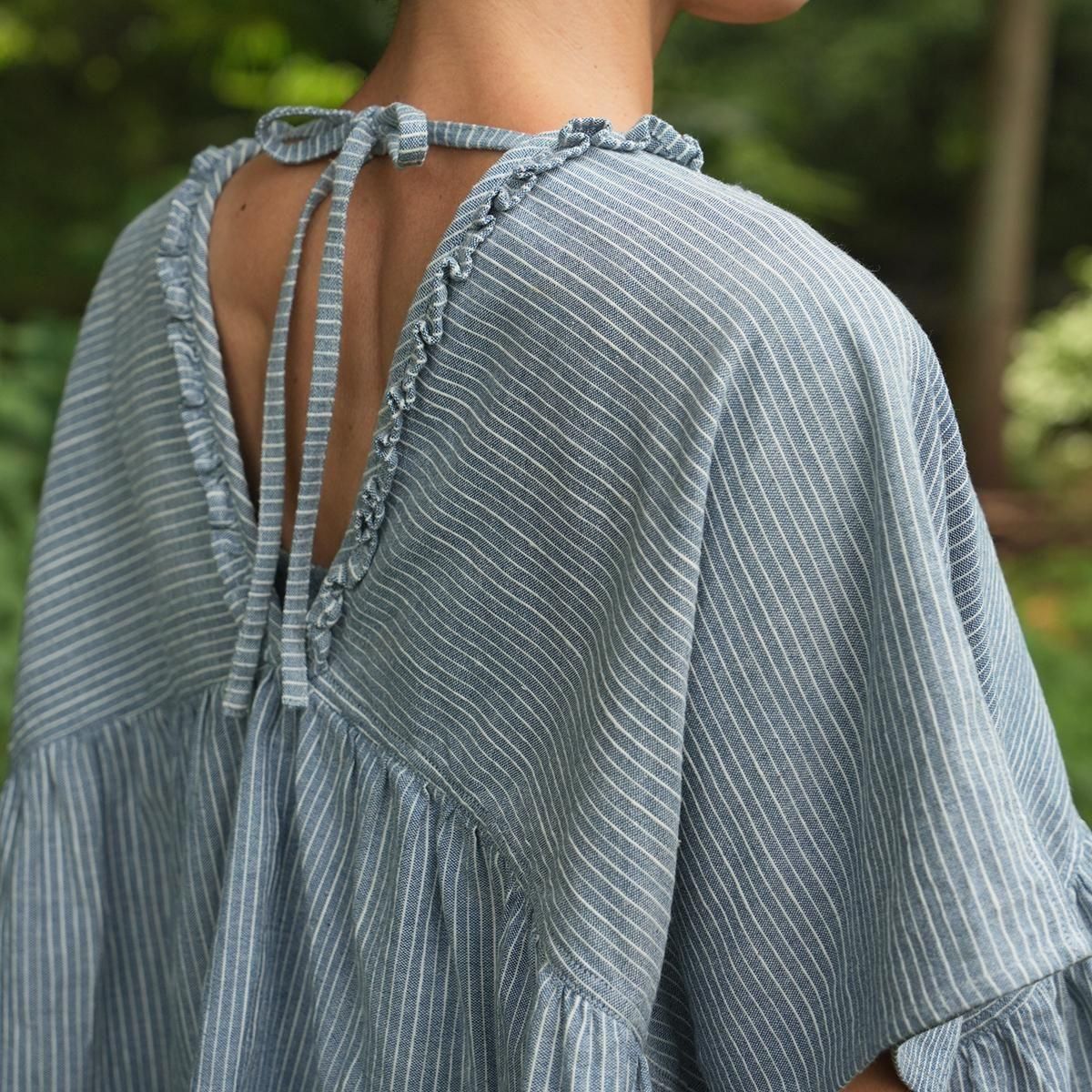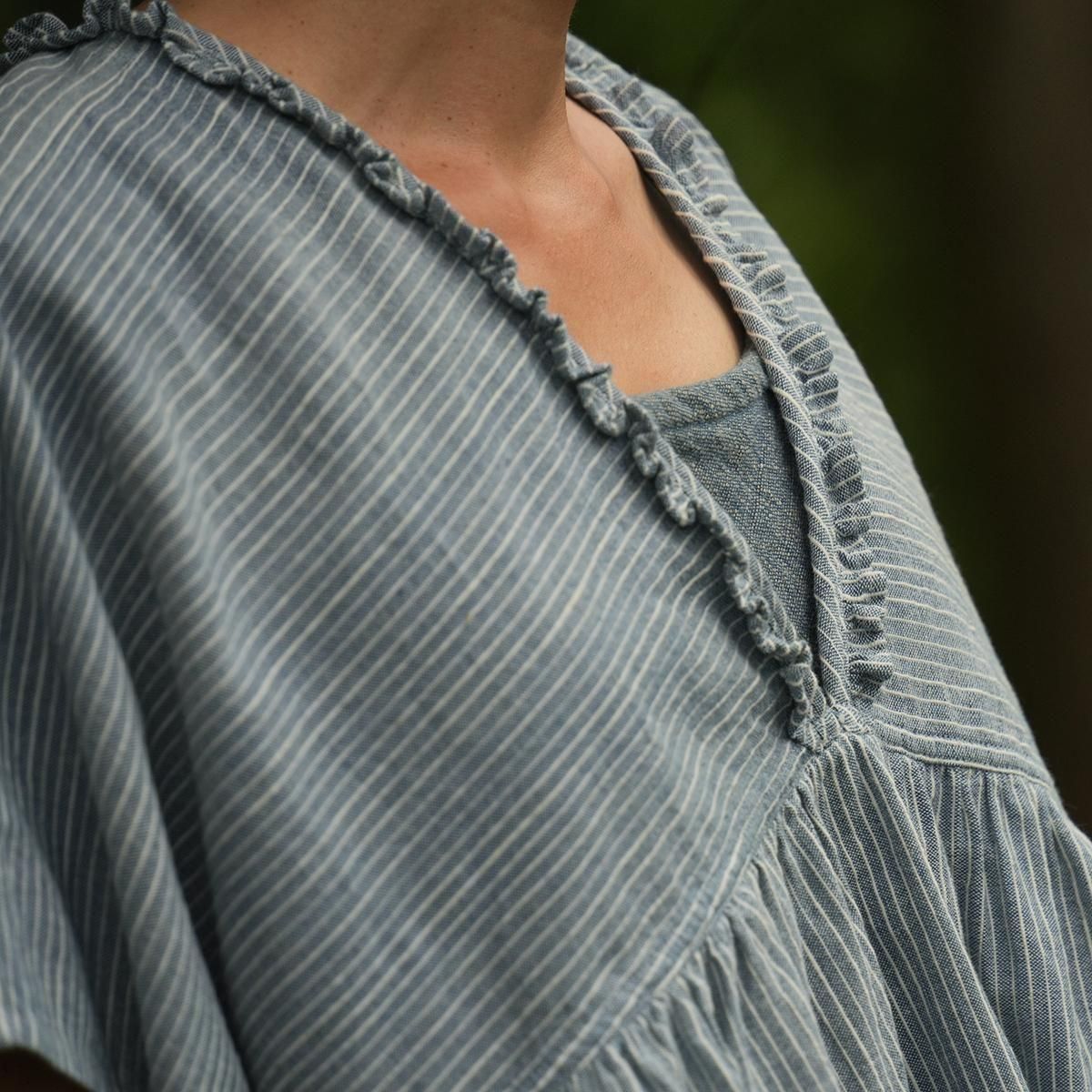 ・ブルーストライプ : コットン100% 手織り 本藍染め